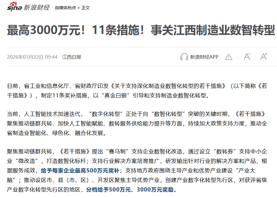 最高奖3000万!江西力推制造业数智化,节能改造迎政策红利